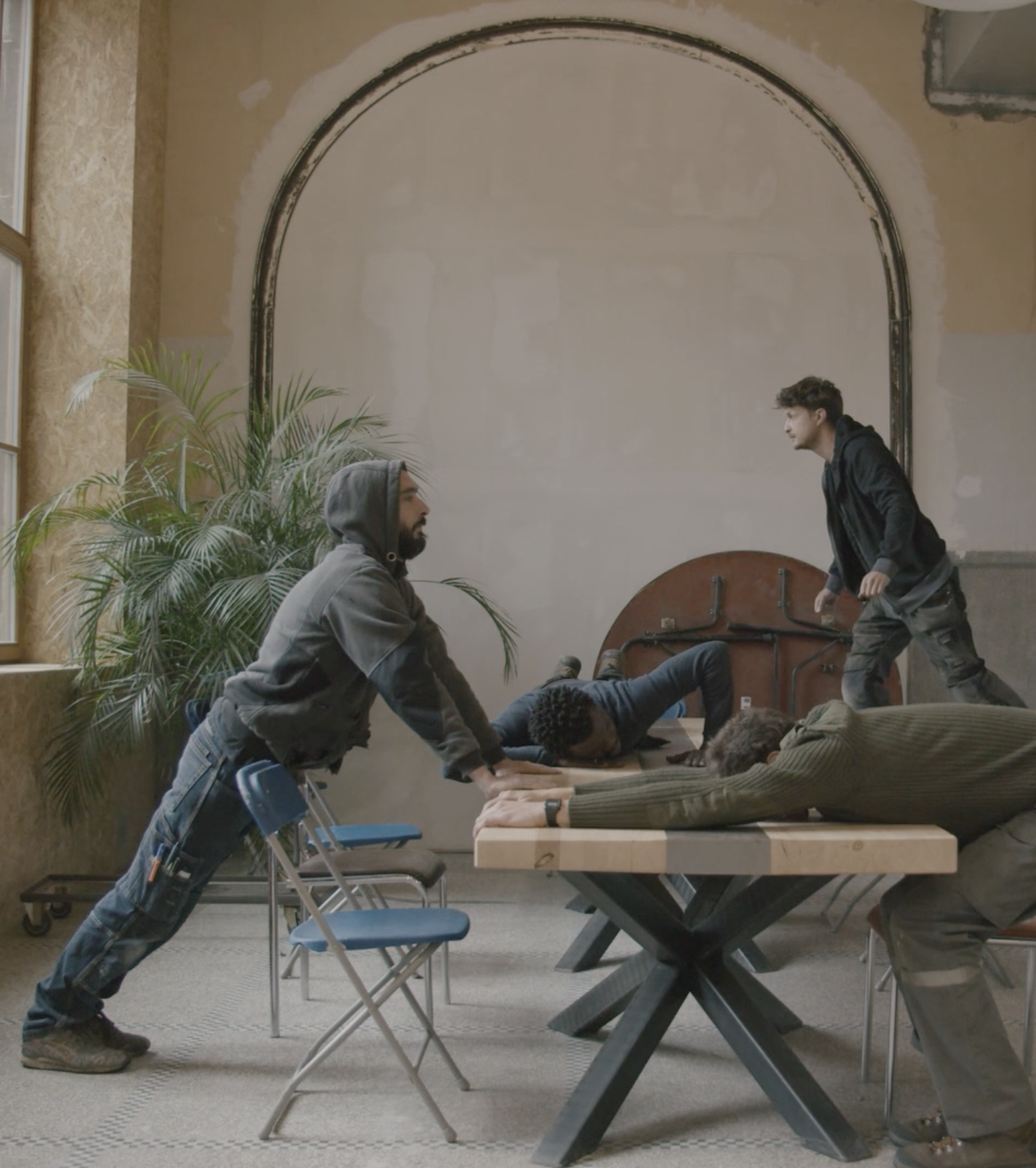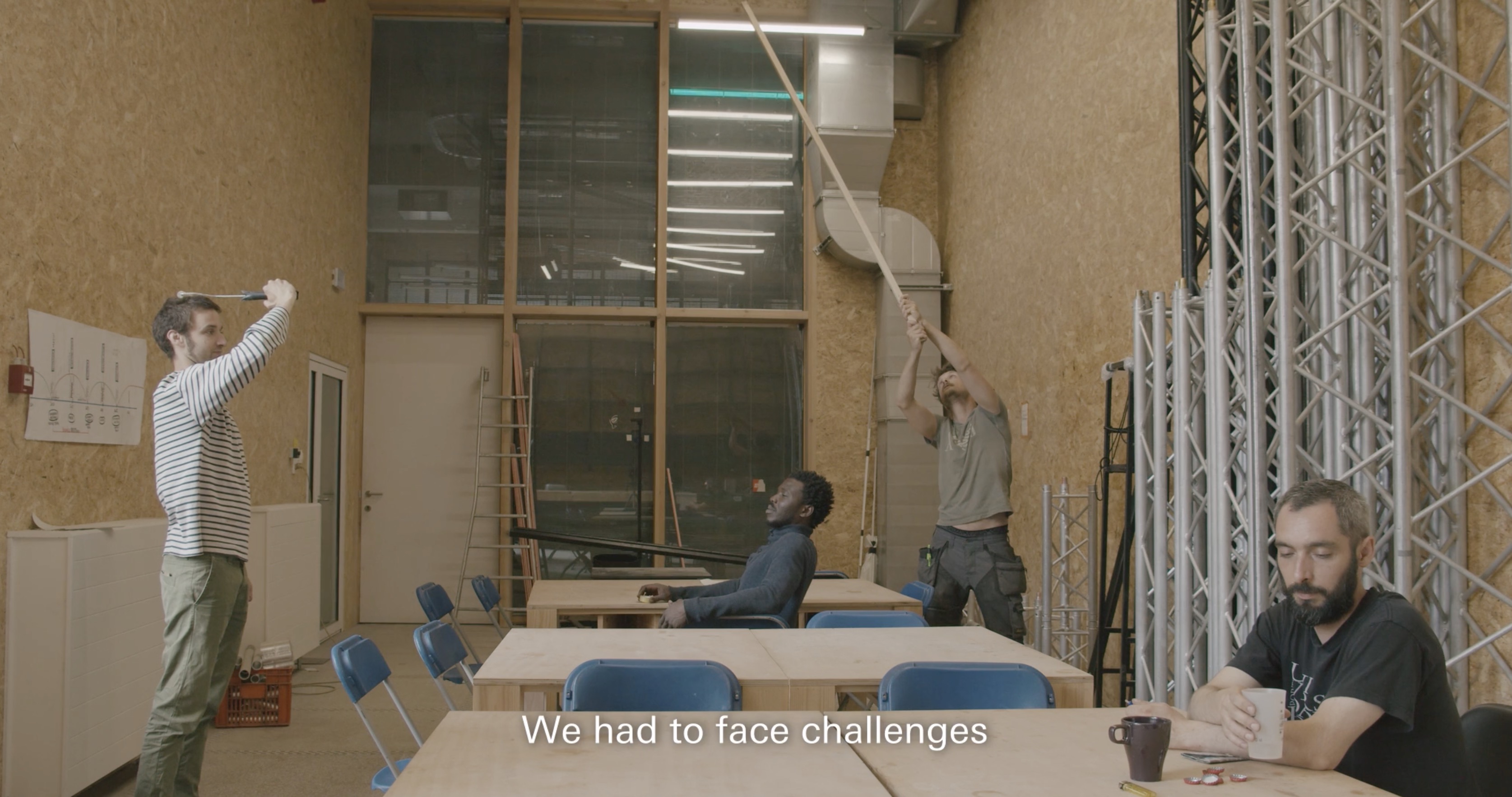 Shot in collaboration with those who built and imagined the project, the film blurs the line between documentary and performance. Through a series of playful, musical, and sometimes absurd gestures, the artists activate the new spaces — echoing the rhythms of work, sound, and movement that inhabit them.